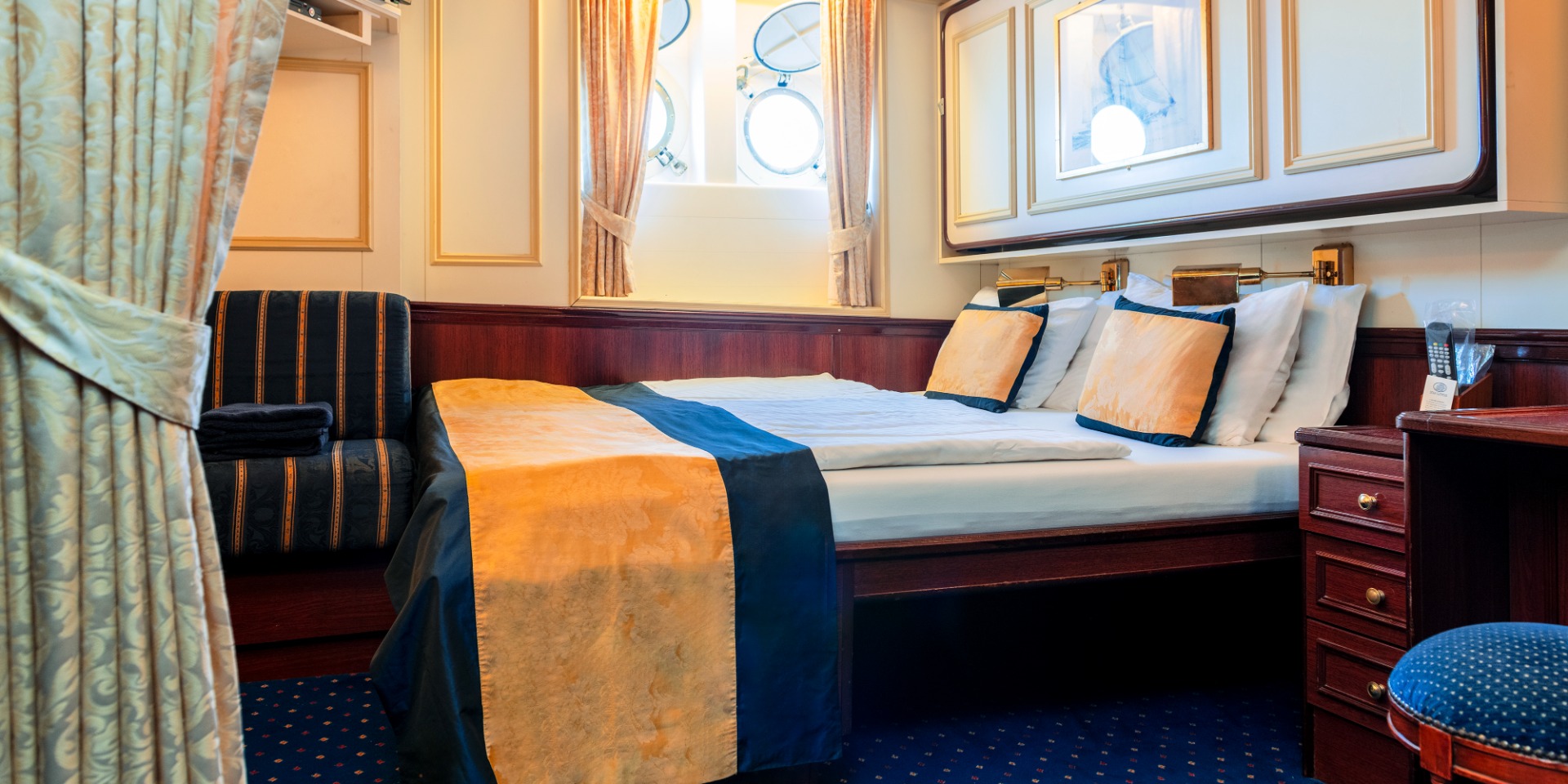 Le CABINE sono DOPPIE: Matrimoniali o a Letti Singoli ; principalmente ESTERNE (ma sono presente anche alcune Cabine Interne) e tutte sono elegantemente arredate con bagno privato, cassaforte, televisore, lettore DVD, telefono con linea diretta e asciugacapelli